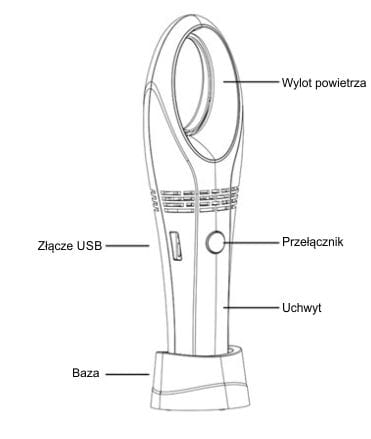 - Zdejmowana podstawa umożliwia postawienie wiatraczka na pulpicie lub bezpośrednie trzymanie w dłoni